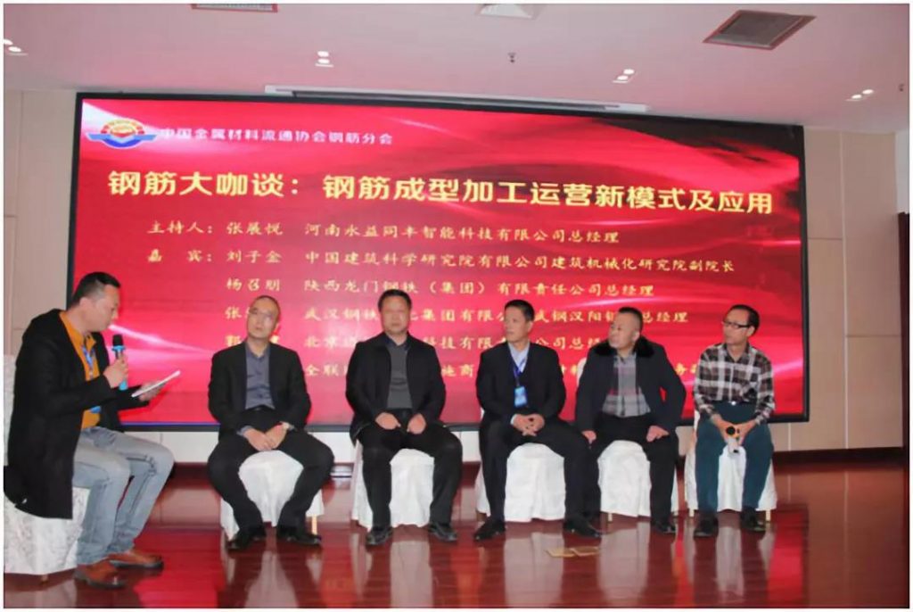 鋼筋大咖談環(huán)節(jié),河南永益同豐智能科技有限公司總經(jīng)理張展悅、中國建筑科學(xué)研究院有限公司機(jī)械化研究院副院長劉子金、陜西龍門鋼鐵(集團(tuán))有限責(zé)任公司總經(jīng)理?xiàng)钫倥?、武漢鋼鐵江北集團(tuán)有限公司武鋼漢陽鋼廠總經(jīng)理張紀(jì)明、北京邁思發(fā)展科技有限責(zé)任公司總經(jīng)理郭冬建、全聯(lián)城市基礎(chǔ)設(shè)施商會建設(shè)與材料設(shè)備分會常務(wù)副秘書長孫凱就鋼筋成型加工運(yùn)營新模式及應(yīng)用闡述了自己的觀點(diǎn)。