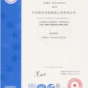 職業(yè)健康安全管理體系認證證書